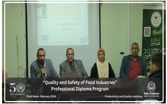 In February 2024, the third wave of Quality and Safety of Food Industries Professional Diploma Program was effectively executed in collaboration with the Agricultural Syndicate, in the presence of Dr Sobhy Sallam -Head of Agricultural Syndicate- and Dr Mostafa Elsayed - PQI consultancy team. Graduates of the diploma are equipped with practical skills and techniques to implement management systems as well as the necessary skills to ensure compliance with food safety regulations and standards, conduct food safety audits and helping organizations to avoid fines, and reputational damage.