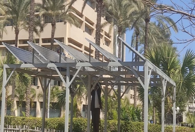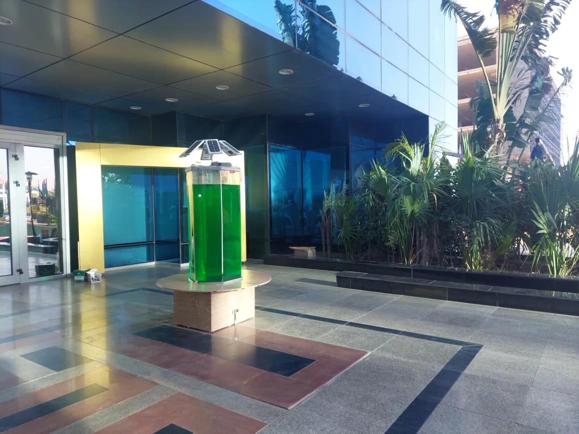 A environmental photobioreactor that uses marine algae to purify the air and produce oxygen. The project is a low-cost version of a model used in the UAE, which costs around $10,000, while the students managed to build the unit in Egypt for less than 15,000 EGP. The amount of oxygen produced by this system is equivalent to that of ten mature trees, making it suitable for use in parks, schools, and crowded urban areas. |