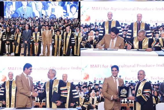 Within the Arab Academy for Science, Technology and Maritime Transport's (AASTMT) endeavor to consolidate bonds of cooperation, always look forward to new future horizons and continuously support the educational process as to keep pace with the continuous technological development, H.E. Prof. Dr. Ismail Abdel Ghafar Ismail - AASTMT President and H.E. Ahmed Abou Hashima - Founder and Chairman of MAFI for Agricultural Produce Industries signed a protocol of cooperation between AASTMT and MAFl for Agricultural Produce Industries as to link the educational process with the industry.