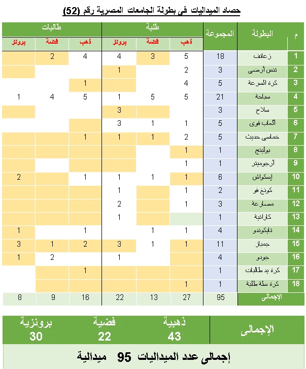 نجوم منتخب مصر و منتخب الأكاديمية لكرة السرعة حصولهم على ترتيب عام (أول جامعات) بمشاركة 26 جامعة خلال منافسات بطولة كرة السرعة للجامعات و جاءت الميداليات كالتالى: