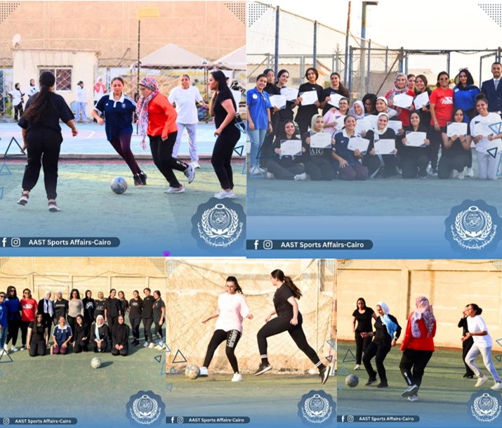 أقيمت فعاليات دورى كرة القدم النسائية لخماسي الطالبات بمقر مجمع النسور (قوات جوية) التى تُنظمها إدارة الشئون الرياضية بقيادة الدكتور/ شادى عبد العزيز مدير إدارة الشئون الرياضية لطلبة وطالبات الأكاديمية بجميع أفرع القاهرة