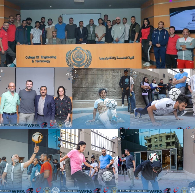 تم عقد ورشة عمل للـ(Freestyling Football) أيام 6 و 7 نوفمبر2024 بفرع الأكاديمية بمصر الجديدة تحت قيادة و إشراف (World Freestyle Football Association)(WFFA) وبحضور أحد مؤسسى الأتحاد و رئيس الشراكات (Daniel Wood) وبحضور كلاً من أ.د/ هادى الحلو عميد شئون الطلاب.