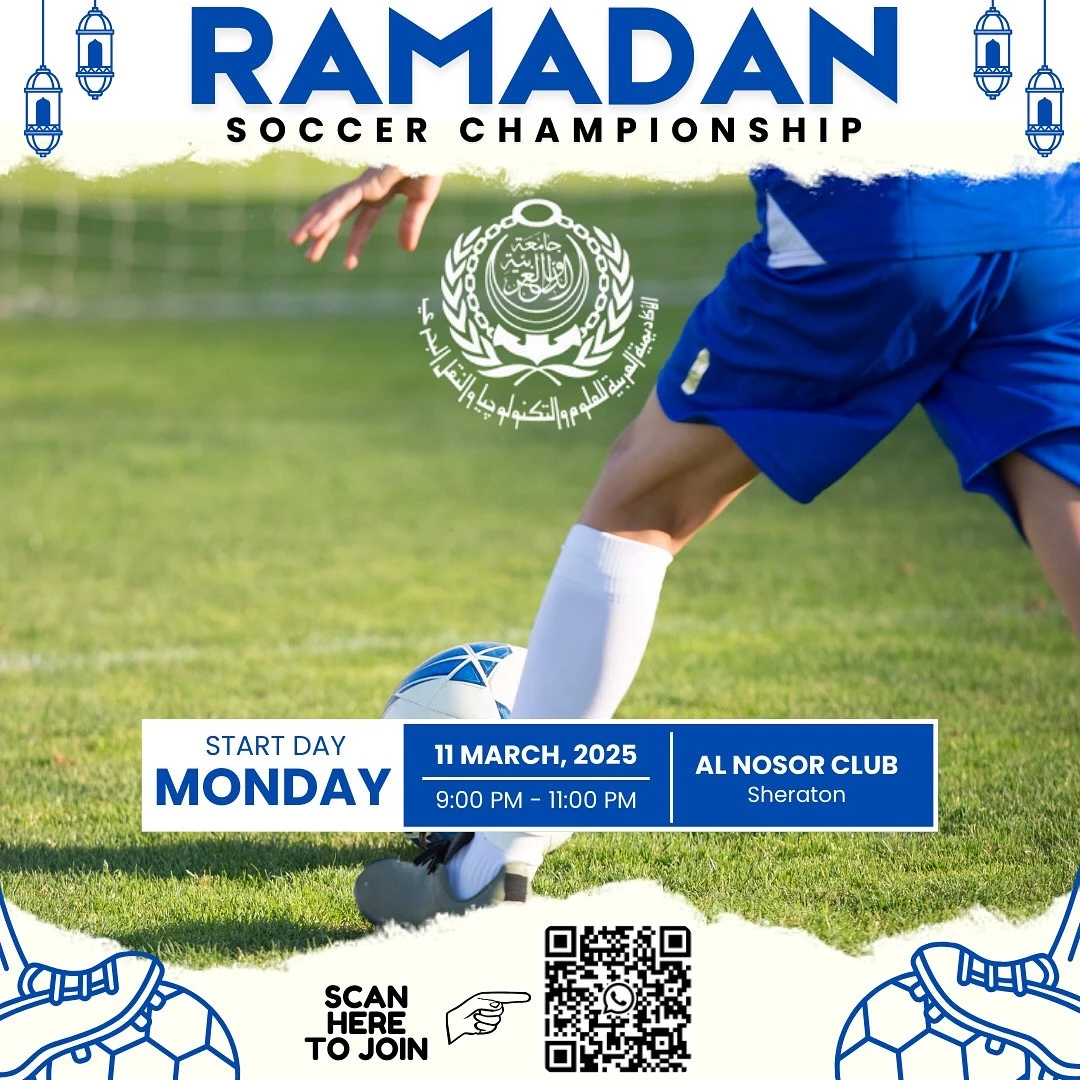 تعلن إدارة الشئون الرياضية بفرع الأكاديمية العربية للعلوم والتكنولوجيا بمصر الجديدة
