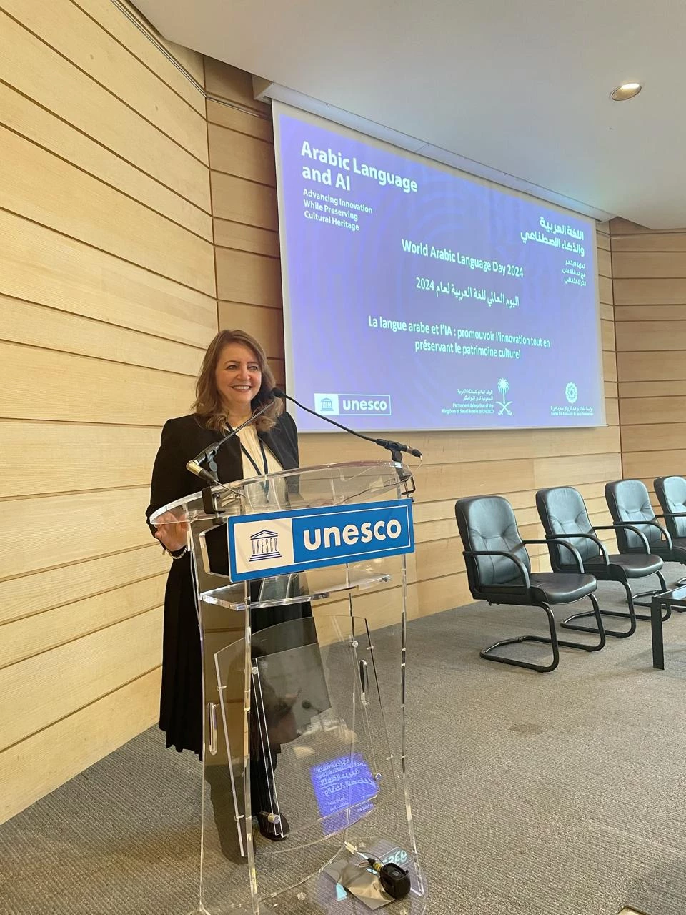Prof. Dr. Aliaa Youssef,Dean of CCIT proudly participated in the World Arabic Language Day celebration held on 18 December 2024 at UNESCO Headquarters in Paris.