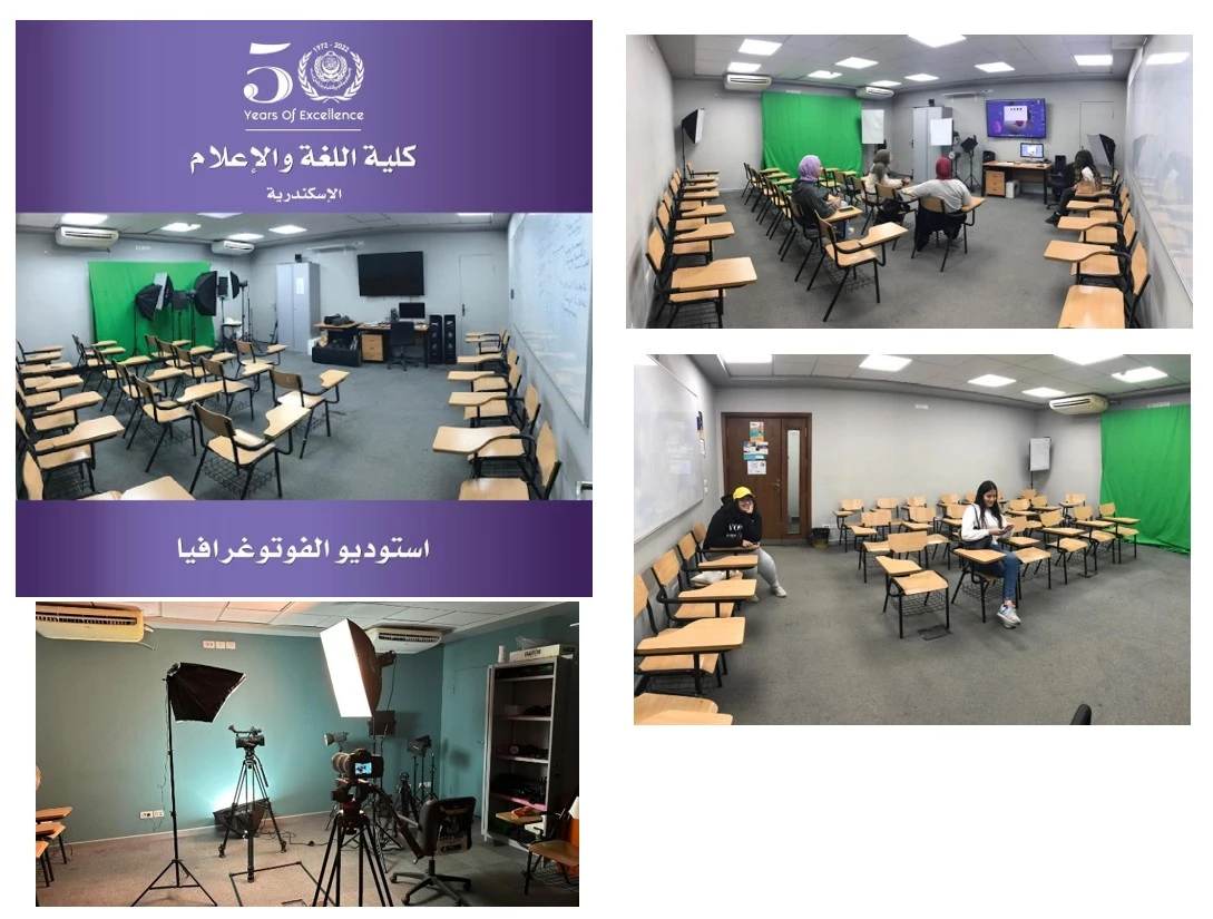As regards the technical aspects, there is a High-Definition television that displays an accurate depiction of students’ work. It is also connected to two iMac devices to facilitate display. Both iMacs have the latest Adobe applications installed to allow students to edit their videos and photos at the highest possible quality. The studio’s sound system is of high quality to ensure the audio level is suitable for media production.