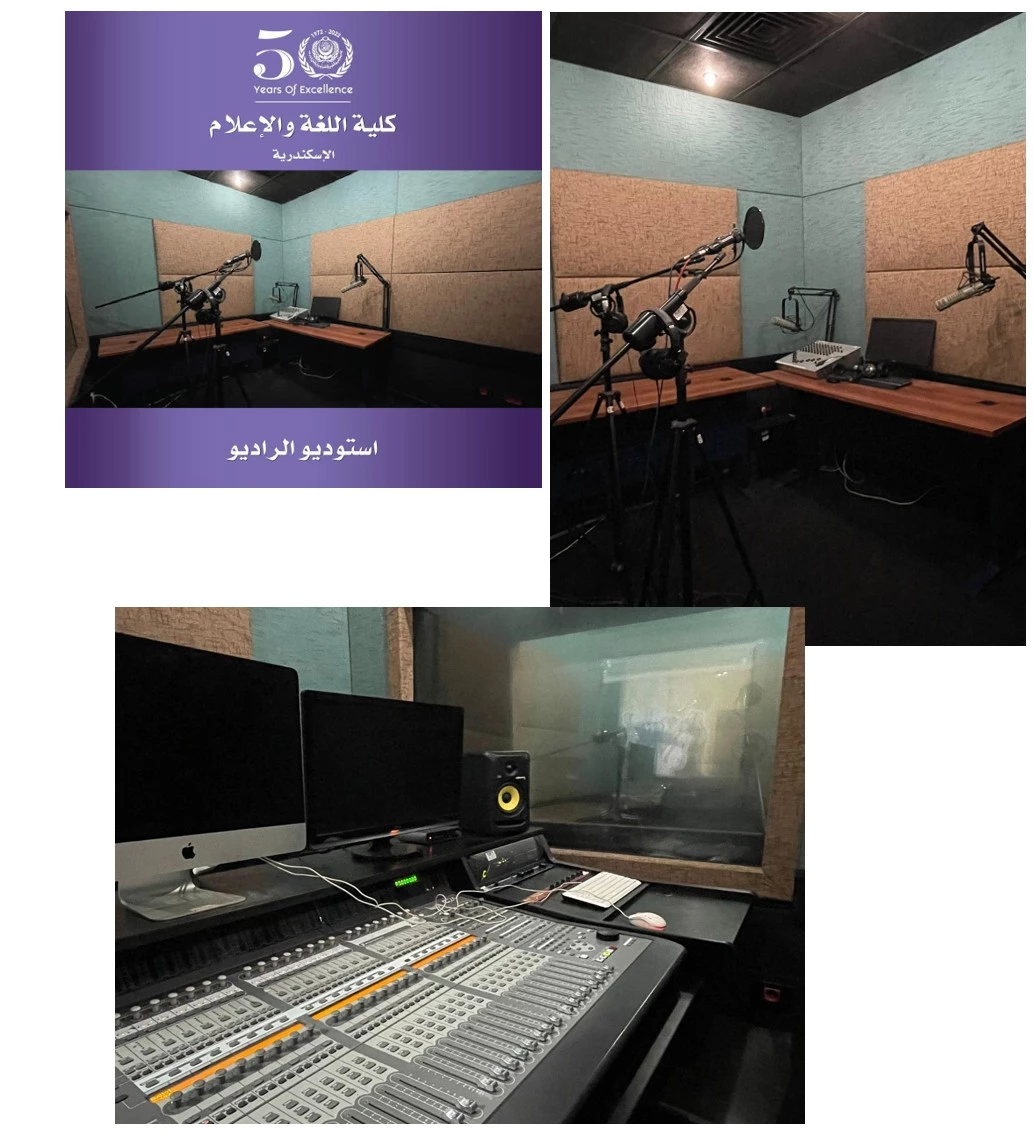 The radio studio includes many advanced facilities such as sound processing devices and programs, sound proof insulating recording rooms, sound control rooms, as well as specialized technical and electrical facilities.