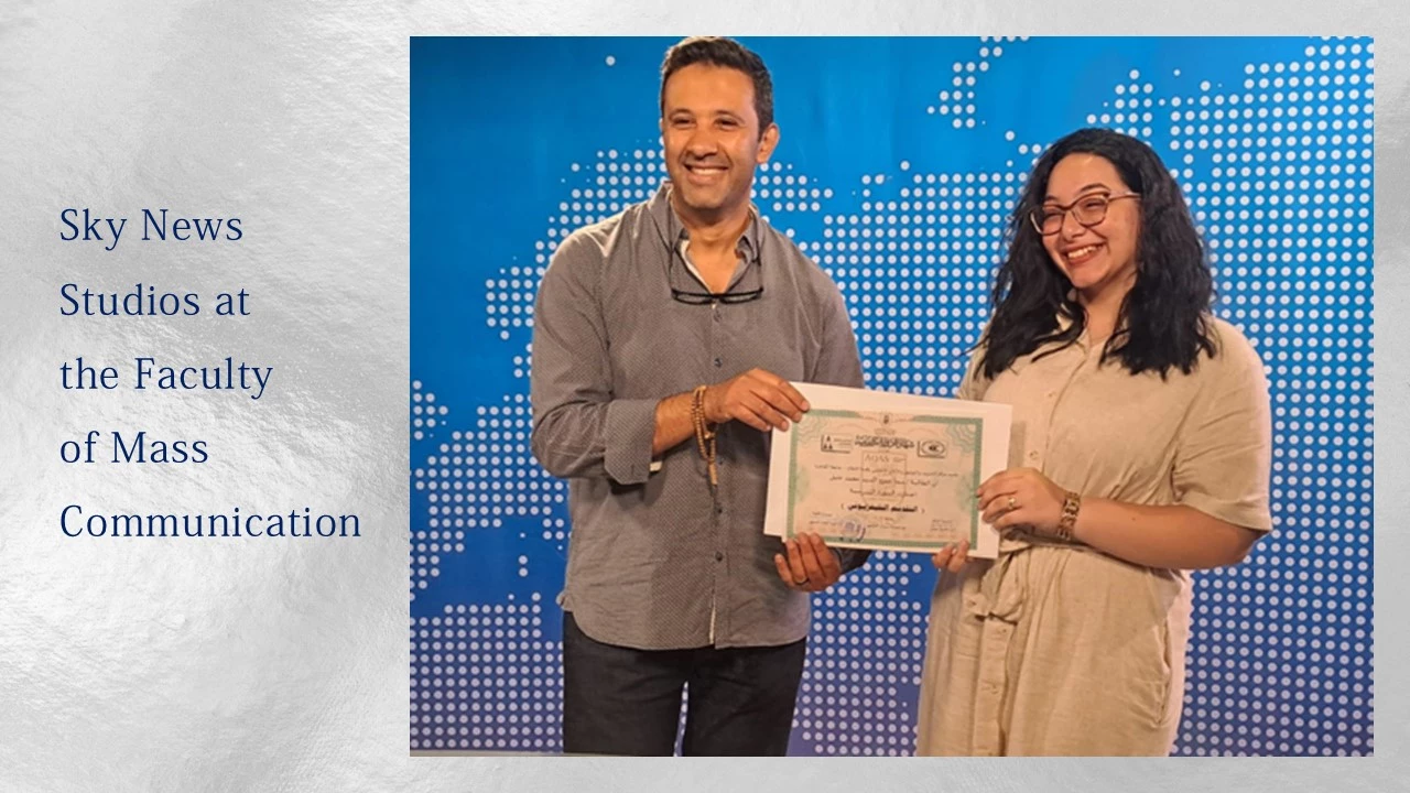 The College of Language and Communication offers its students training opportunities at the Sky News Studios at the Faculty of Mass Communication at Cairo university. The program immerses students in the fast-paced world of news production, reporting, and broadcasting, exposing them to every stage of the newsroom workflow. From researching stories and conducting interviews to editing footage and presenting on air, students gain firsthand experience under the guidance of seasoned journalists. This hands-on training sharpens their editorial judgment, technical skills, and understanding of the ethical responsibilities that come with delivering news to a global audience