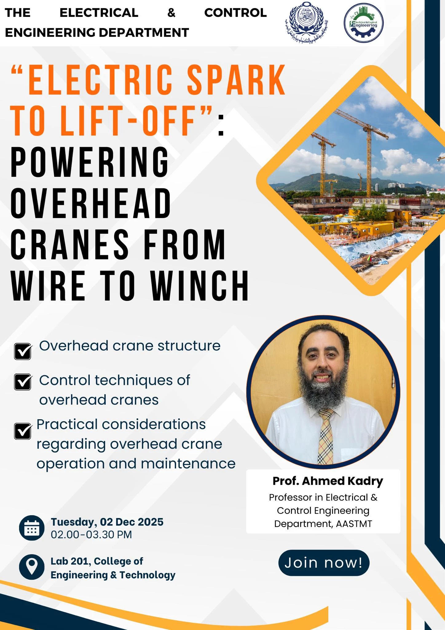 As part of the commitment of the Department of Electrical Engineering and Control – Faculty of Engineering and Technology, Headquarters of the Arab Academy for Science, Technology & Maritime Transport, and initiated by the student activity team Wired for Success, we are delighted to announce the upcoming hands-on training workshop titled: