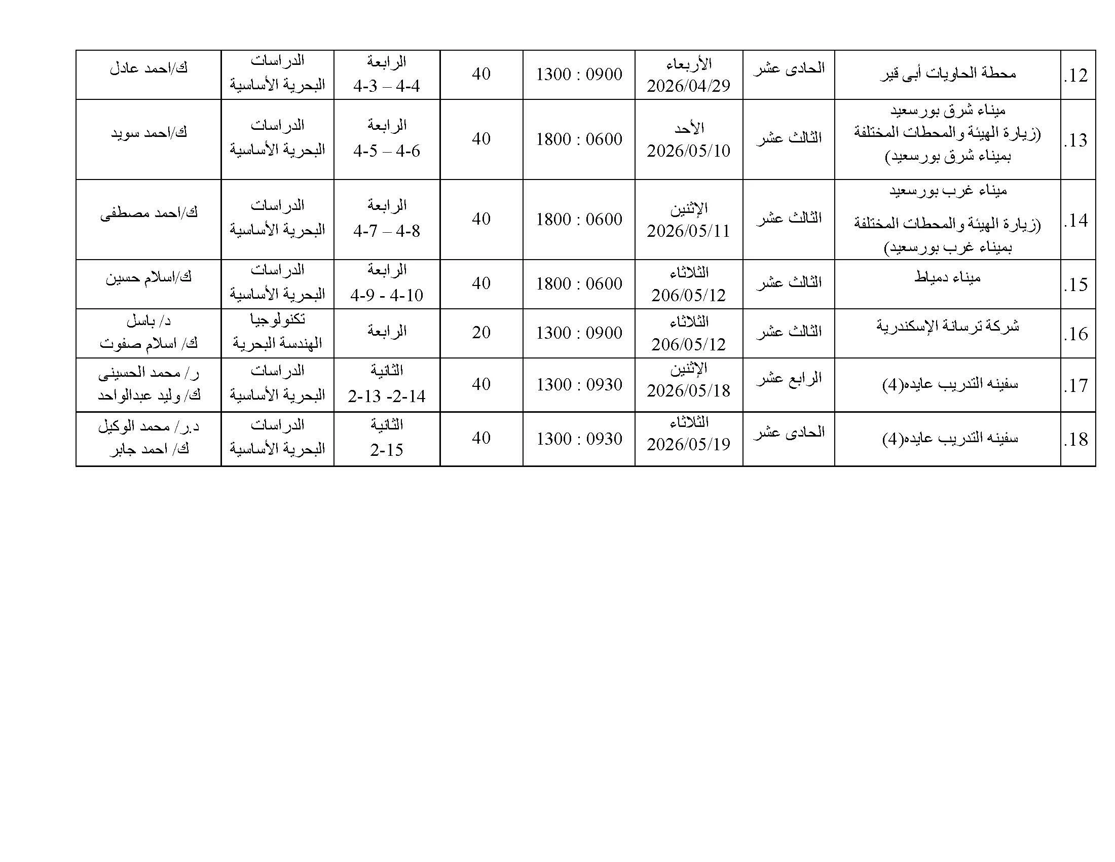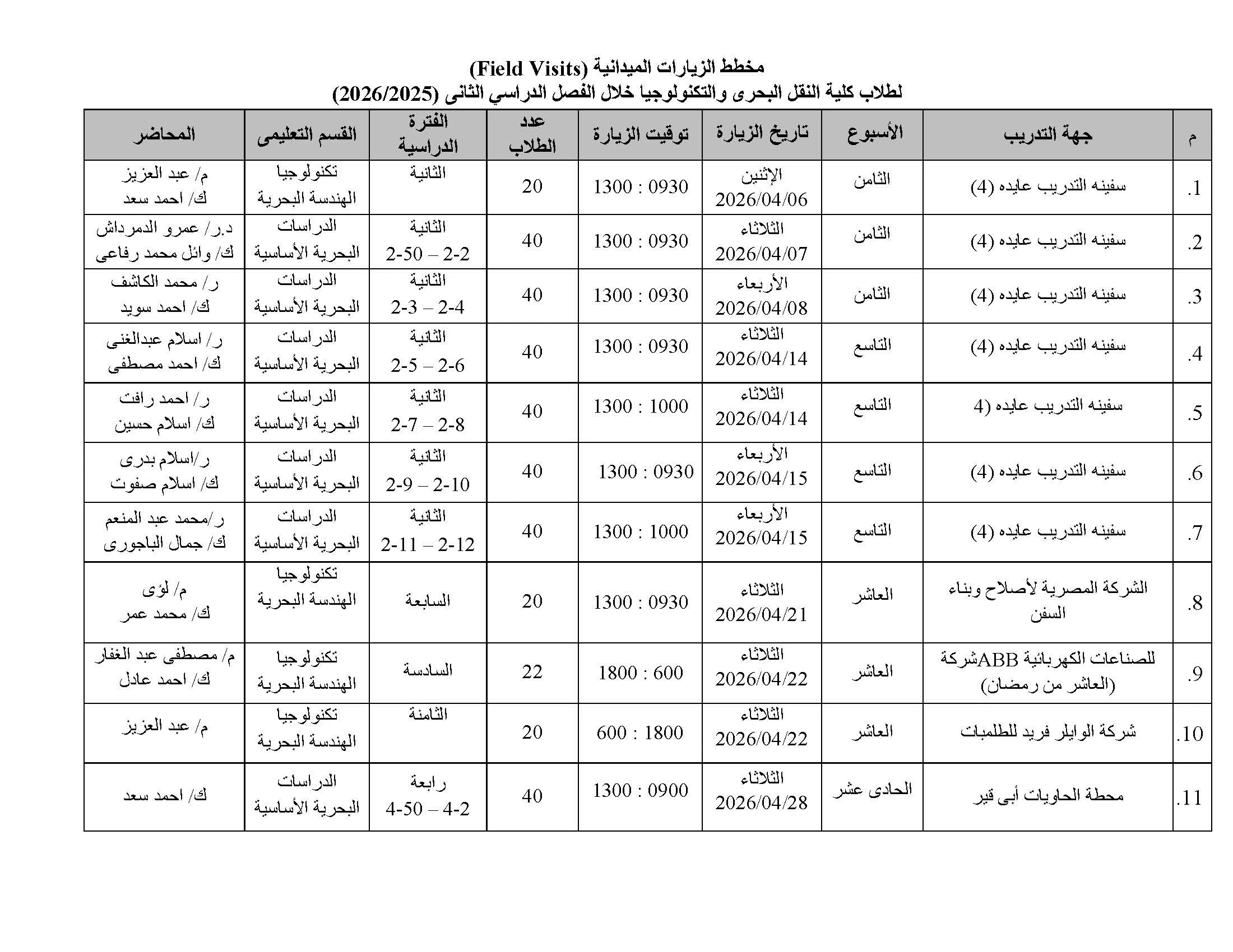Field Visit Plan 2025/2026 Second semester