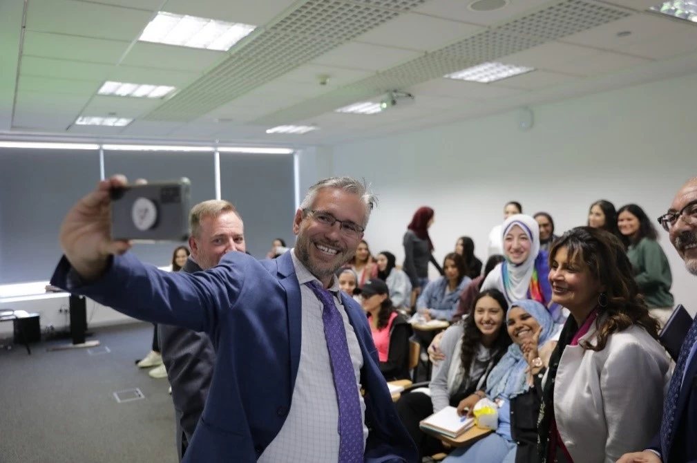A reception for the Sheridan College delegation at the headquarters of the College of Language and Communication in Smart Village