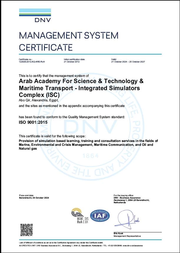 The Communication and Computing Systems Department applies and meets the requirements of the IMO’s conventions requirement for delivering the different courses, that is the department as part of the ISC is working under the umbrella of the IMO. The GMDSS trainees after they finish their courses at the AASTMT they should set for exam by the Egyptian National Regulatory Authority to issue GMDSS license to the trainee who passes their exam.
