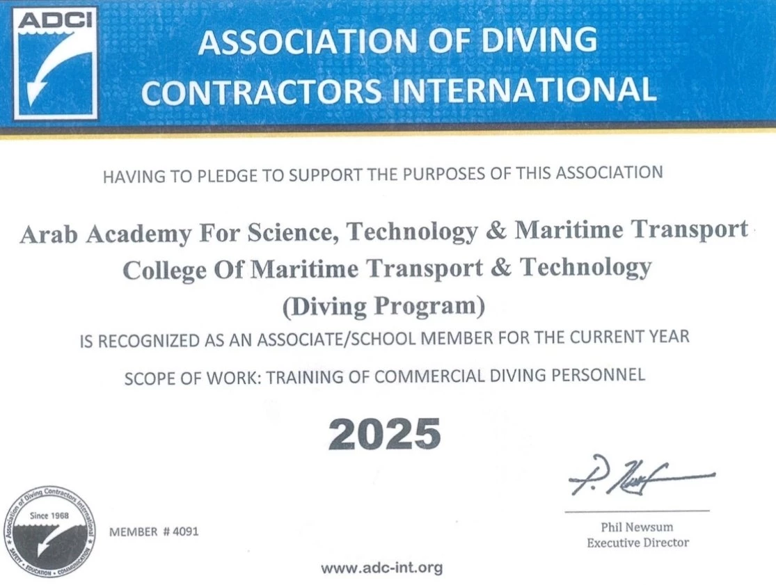 • The College of Maritime Transport and Technology Receives International Quality Certification (ADCI) for Its Commercial Diving Programs