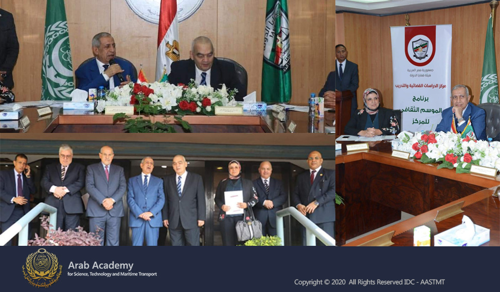 During the visit, they discussed the methods of cooperation in areas of mutual interest, then they inaugurated the training program organized by the Judicial Studies and Training Center at the State Lawsuits Authority, where the program will provide AASTMT College of Law students with the scientific and academic support and training by specialists and experts in the field, and that was held in the presence of a group of Counsellor and members of the board of directors of the Judicial Studies and Training Center at the Egyptian State Lawsuits Authority, and a group of AASTMT academic staff members and officials.