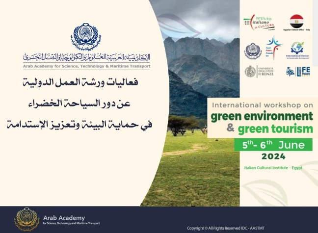 In cooperation with Italian cultural Institute, center for cultural and World Heritage at the Egypt Future Foundation and a number of Egyptian and Italian universities, AAST organized this international work shop to discuss role of green tourism in protecting the environment and maintaining it green and sustainable. |
