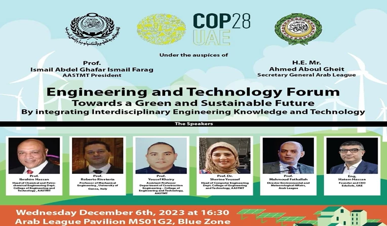 AASTMT has participated in (COPP28) which was held from the 30th of November – 12th of December 2023 in Dubai, United Arab Emirates. A group of AAST professors have shared discussions on their research in one of the conference sessions on the 6th of Dec. with the theme: Towards a Green and Sustainable Future by integrating interdisciplinary Engineering Knowledge and Technology. |