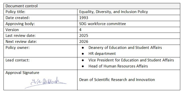 AASTMT is dedicated to promoting social justice and fostering an environment where every member of our community, including women, is treated with respect and dignity. We are committed to employing a diverse workforce and educating a student body that reflects the global community we serve, including individuals from Europe, Asia, North America, and the Gulf region. Our institution prioritizes equal opportunity and strives to ensure that all staff, students, and visitors are treated fairly, free from discrimination based on age, disability, gender, marital status, pregnancy, race (including color, nationality, and ethnic origins), and religion. We recognize the importance of addressing health disparities and social inequalities, particularly in relation to students with autism, marginalized groups, and migrant workers.