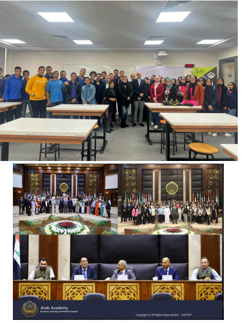 2.STEAM School Visits – AASTMT’s College of Engineering and Technology (COET) at the Al Alamein campus hosts STEAM school visits, welcoming students from local schools to explore scientific, technological, engineering, arts, and mathematics concepts. These visits provide hands-on learning experiences, foster early interest in STEM fields, and strengthen community engagement with science. In addition, the AASTMT Planetarium Center in Abu Qir serves as a cornerstone of community outreach, welcoming high-profile delegations such as participants of the Seventh Session of the Arab Universities Youth Camp. These programs promote scientific literacy among future leaders and inspire young learners to engage with research, innovation, and technology.