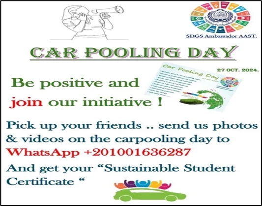 An environmental initiative organized by AASTMT to encourage students, faculty, and staff to share rides instead of using individual cars. The event aimed to reduce carbon emissions, traffic congestion, and fuel consumption, promoting sustainable mobility.