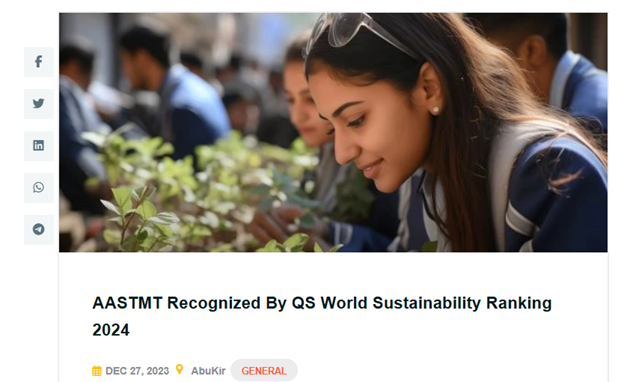 In December 2023, AASTMT was recognized in the QS Sustainability Rankings 2024 as the only non-governmental university in Egypt to be listed. This recognition indicates the institution’s commitment and visibility in sustainability among global peers.