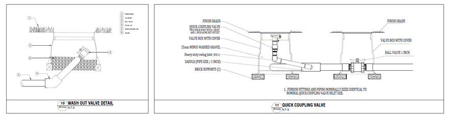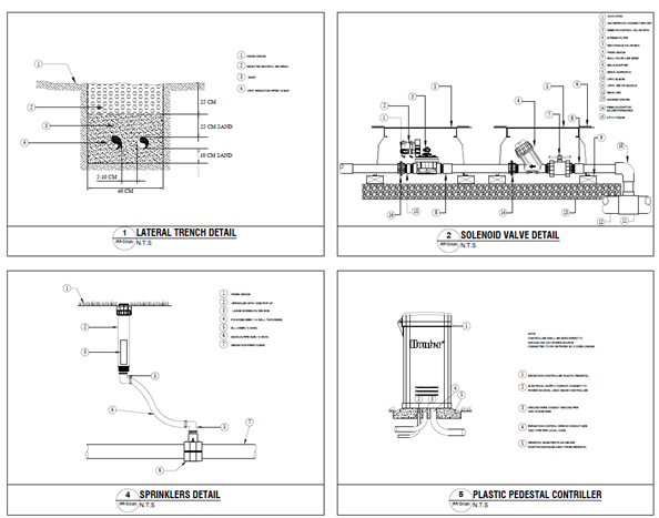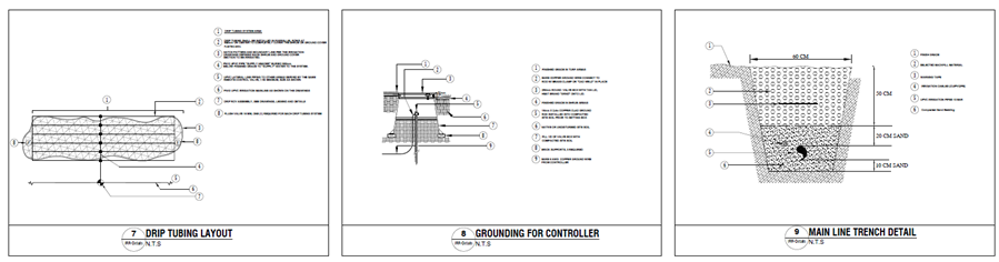 3. Proper Design and Infrastructure: The irrigation system includes mainline and lateral trenching, valve boxes, and positive drainage systems, prevents leakage, erosion, and soil saturation. The system also includes electrical grounding for operational safety, ensuring long-term reliability and minimizing risks of polluted water infiltration into groundwater systems.
