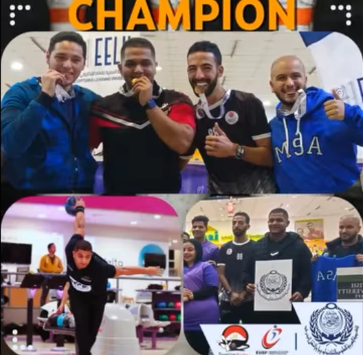 The student (Mohamed Hassan Youssef), the star of the Egyptian bowling team, a player for Heliopolis Club and the Arab Academy for Science and Technology team, who is enrolled in the Faculty of Management, Heliopolis branch, won the gold medal and first place on the occasion of achieving it. During the bowling competitions within the Egyptian Universities Martyr Al-Rifai Championship No. (52)