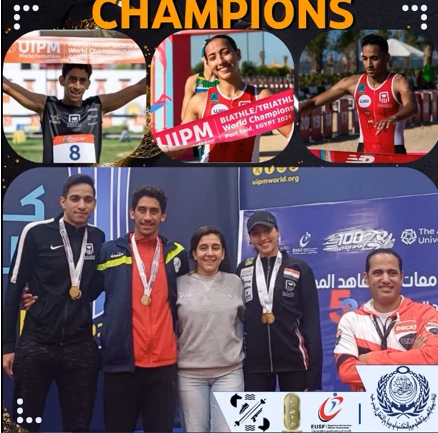 Our heroes are the stars of the Arab Academy Modern Pentathlon team, for achieving 5 different medals during the 2025 Modern University Pentathlon Championship competitions held at the American University on the sidelines of the 2025 Modern Pentathlon World Cup.