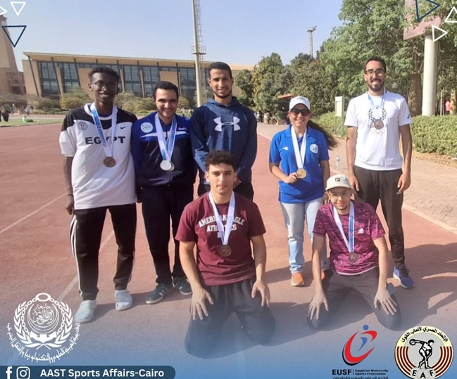 Our champions are the stars of the Egyptian Athletics National Team and the Arab Academy for Science and Technology national team, due to their brilliance and winning 8 medals during the 2025 University Athletics Championship competitions held at the American University, where the medals and results were as follows: