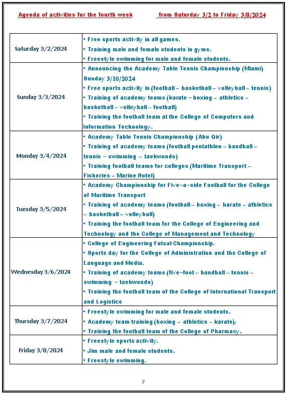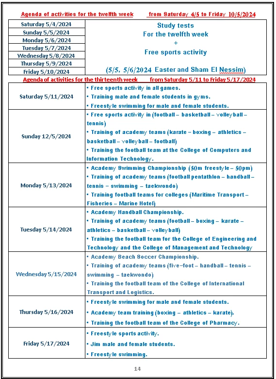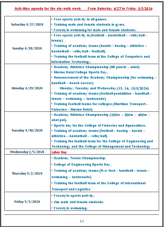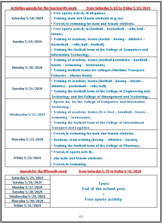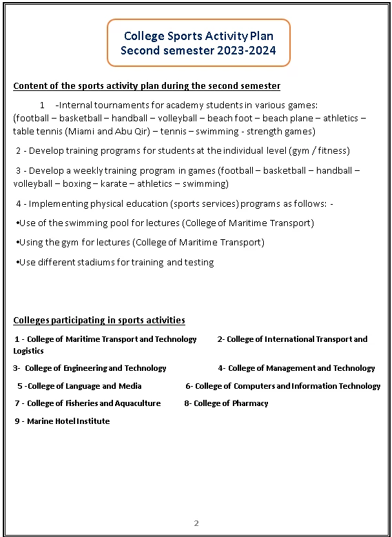 Sports activity plan 2024/2023