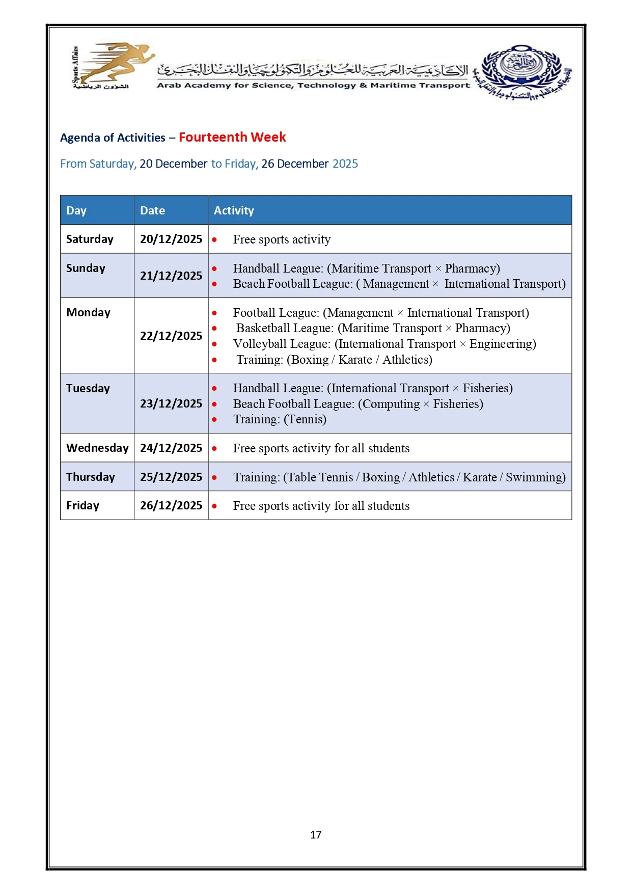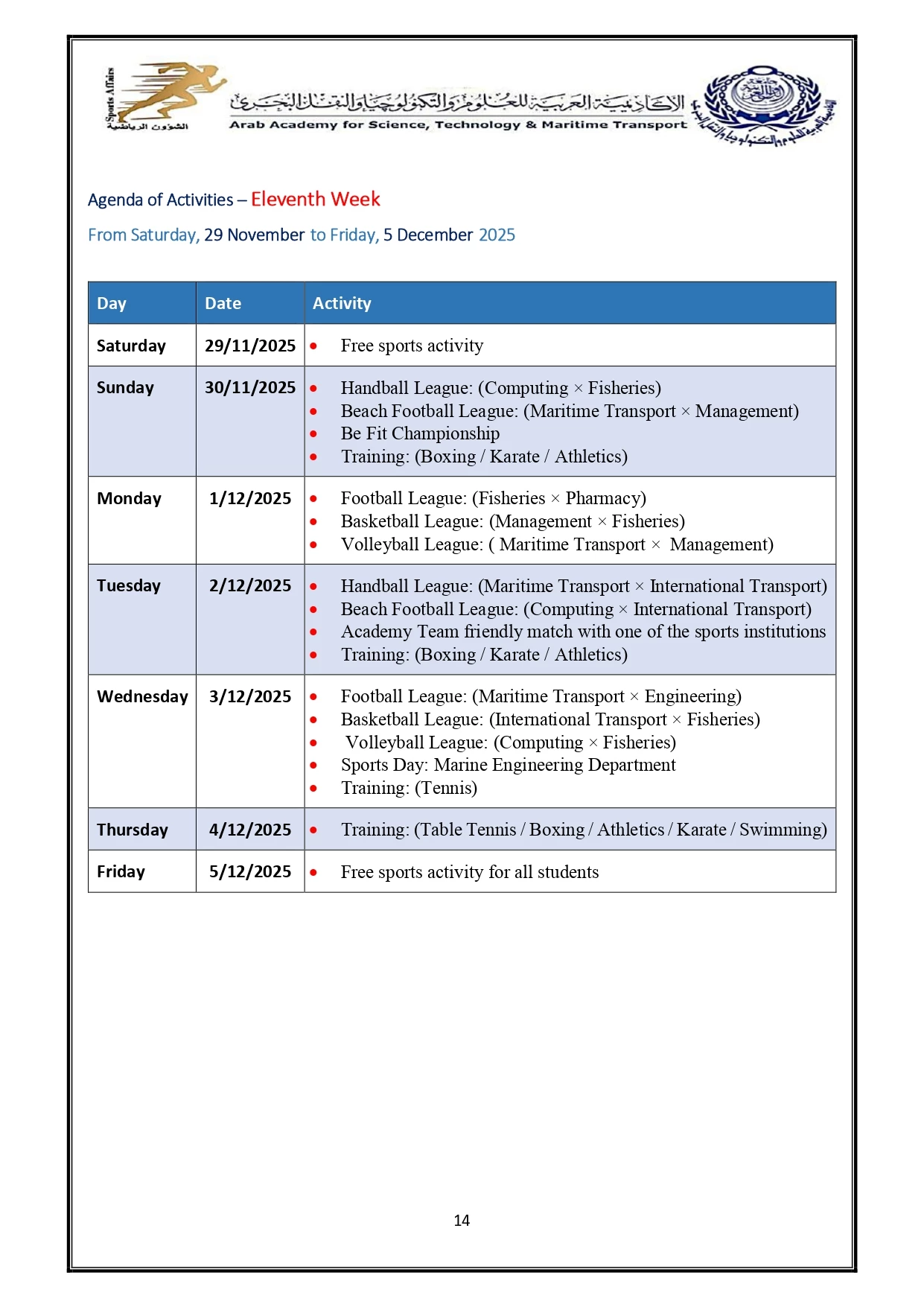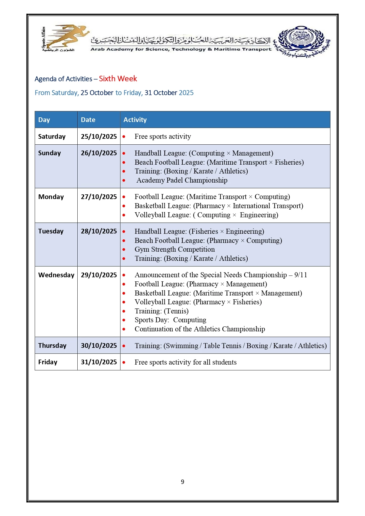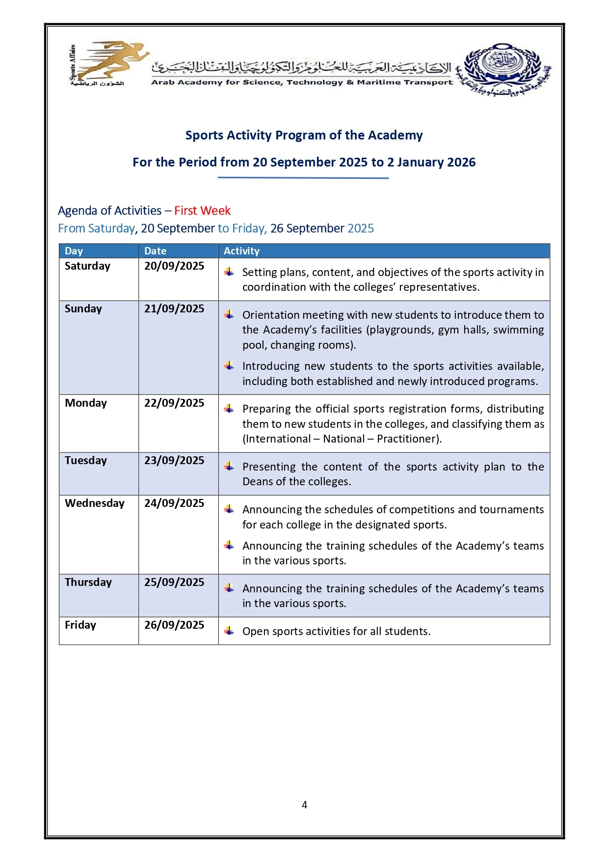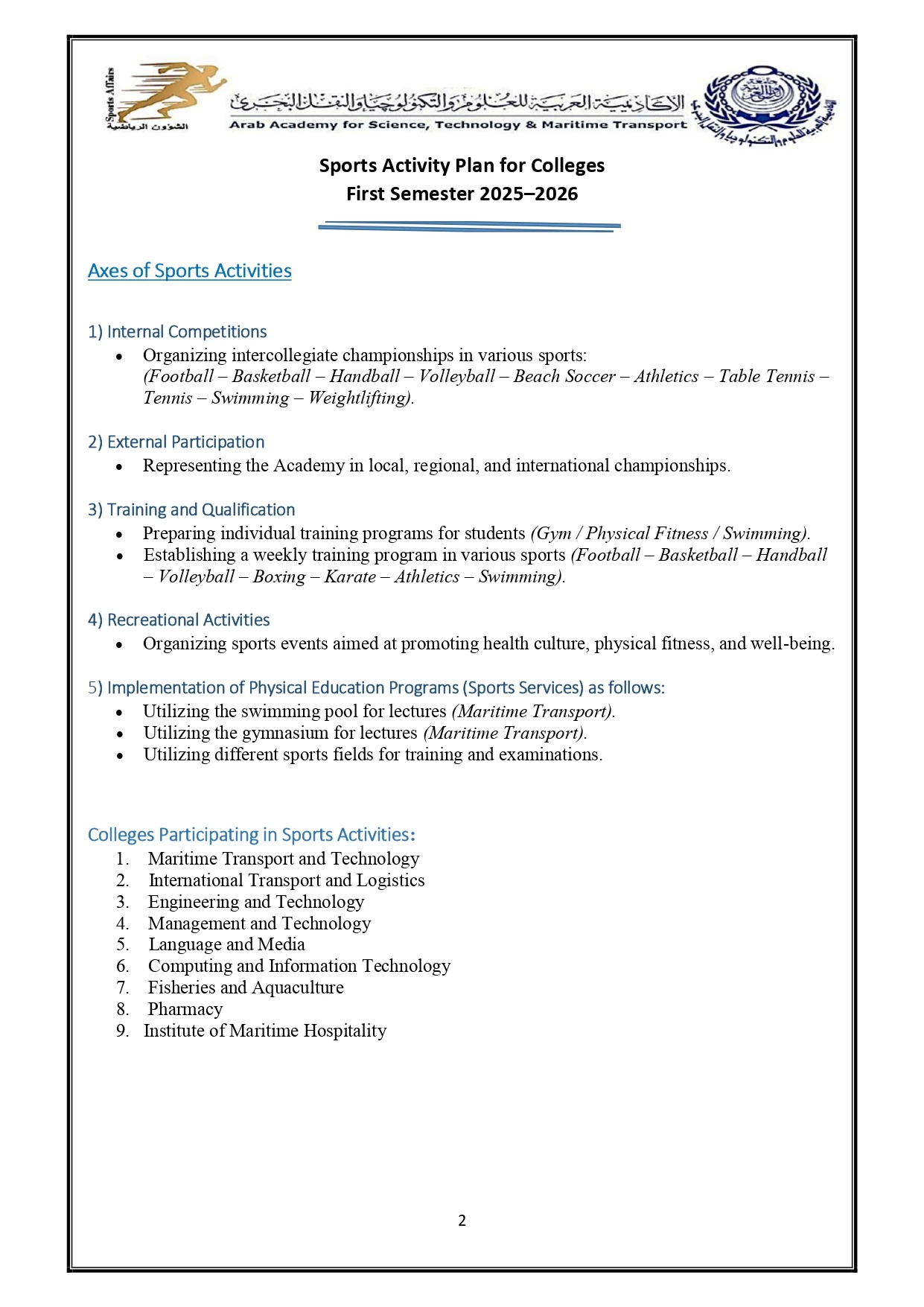Sports activity plan 2026/2025