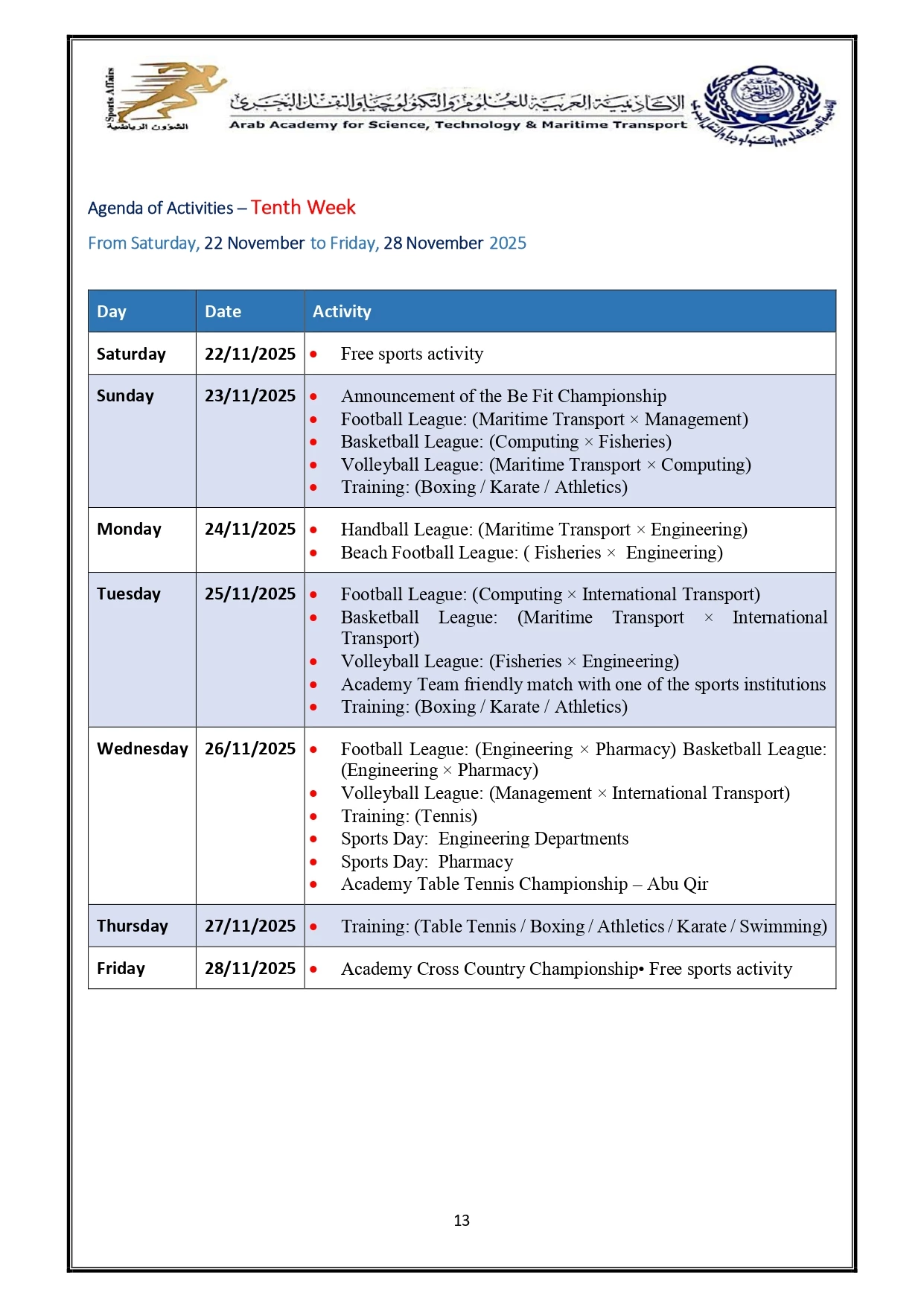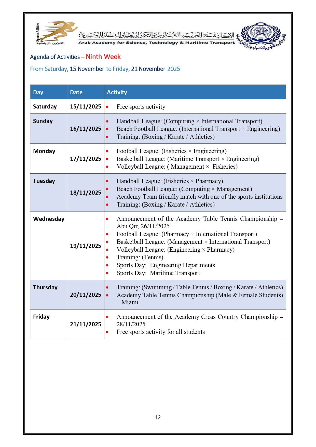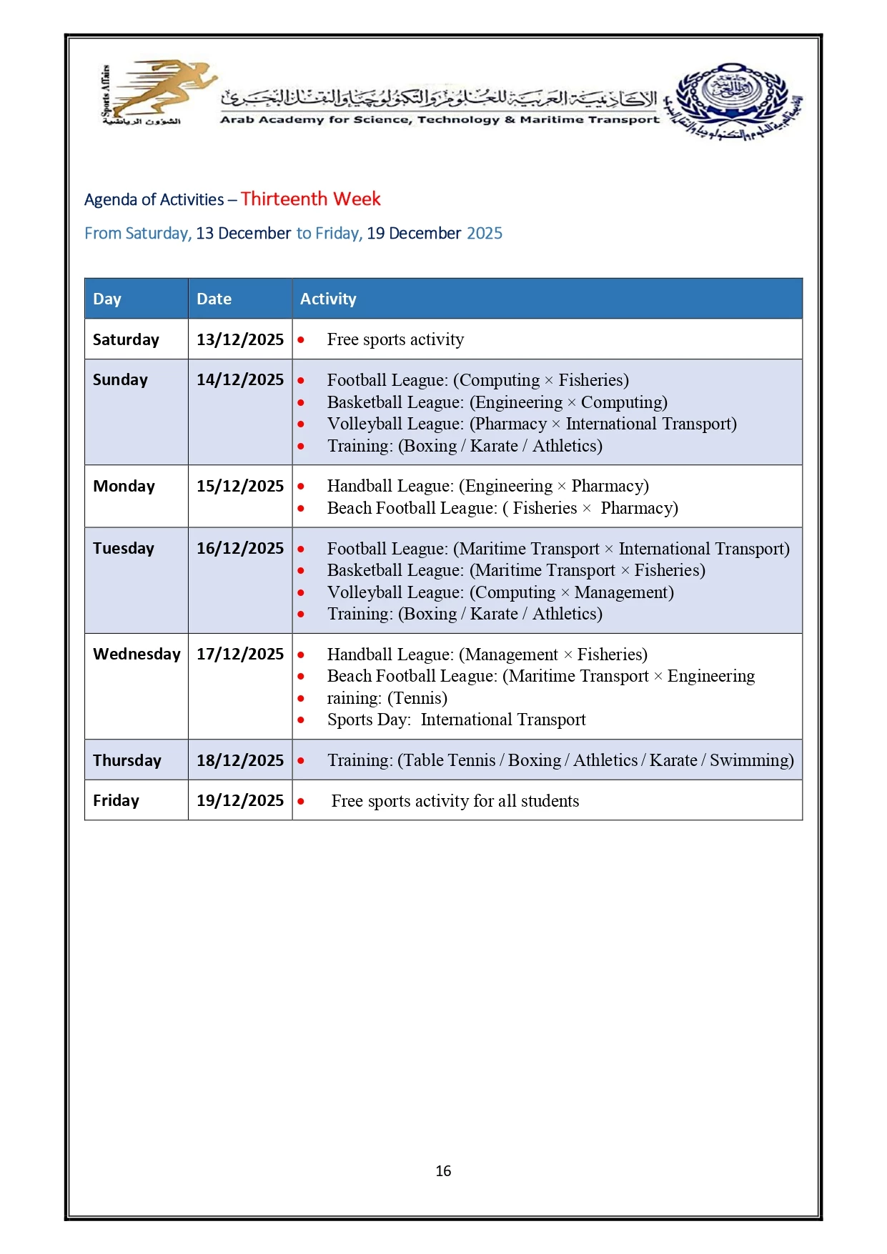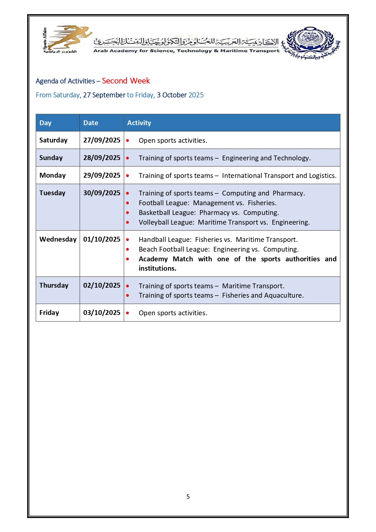 Sports activity plan 2026/2025