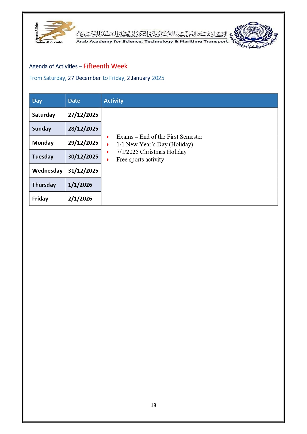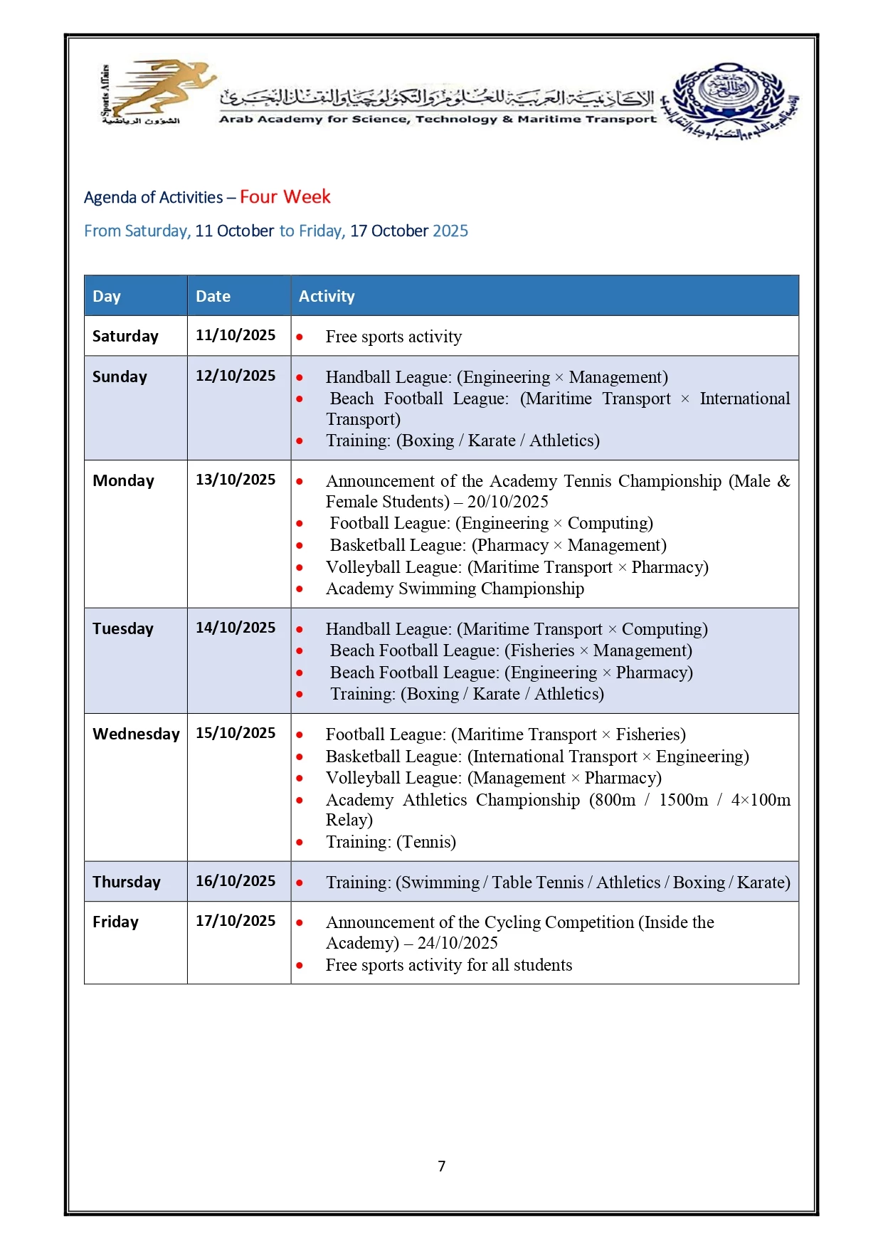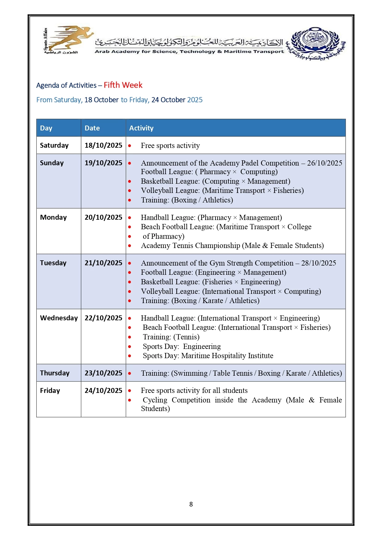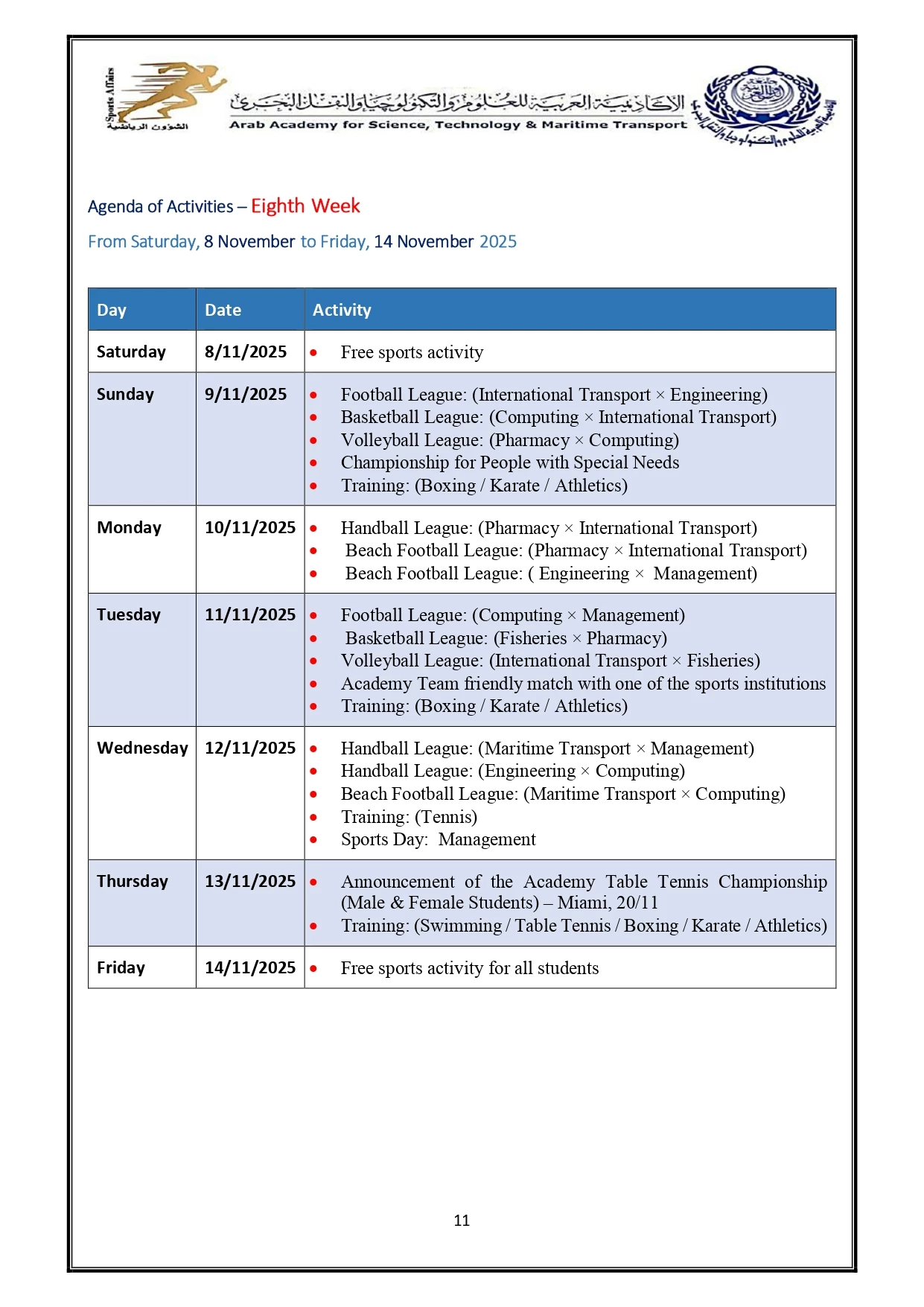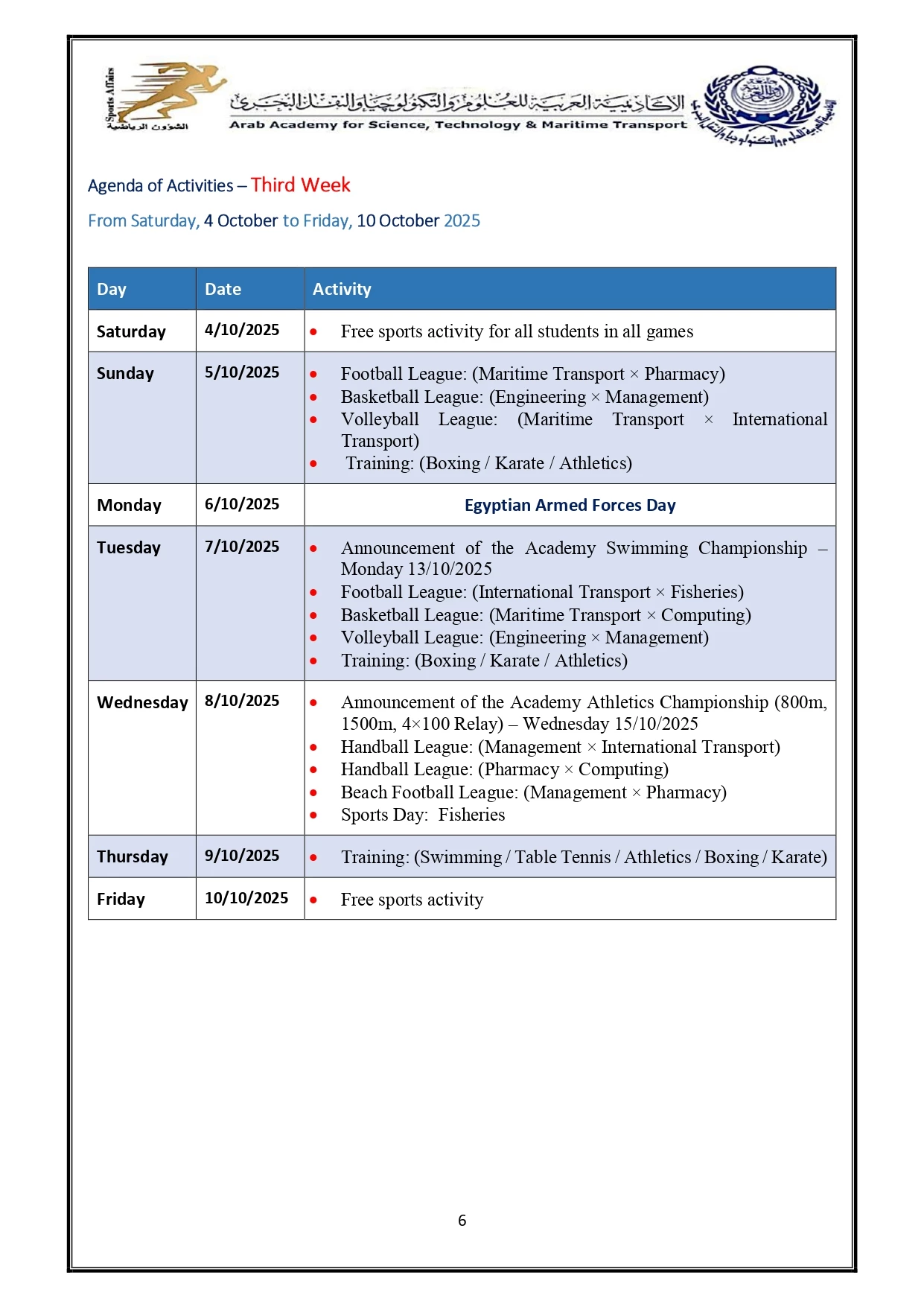 Sports activity plan 2026/2025