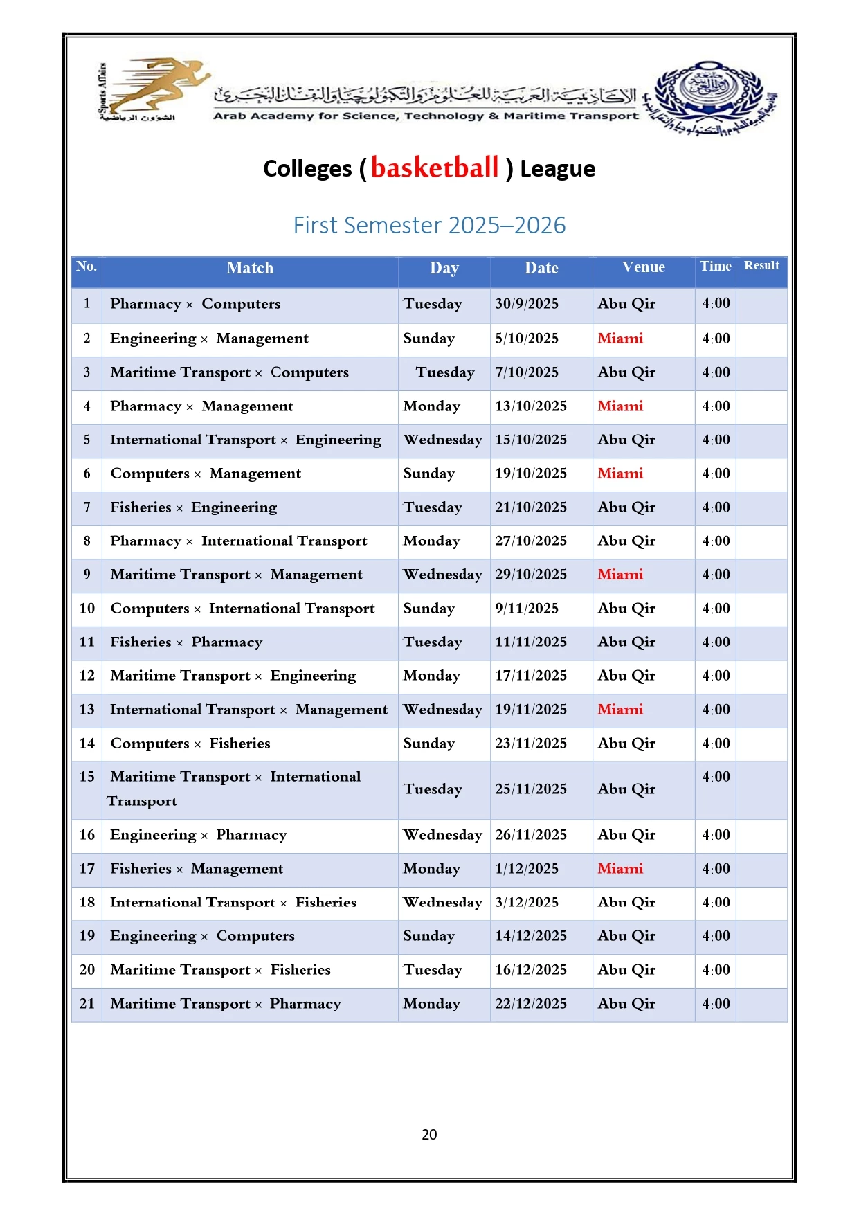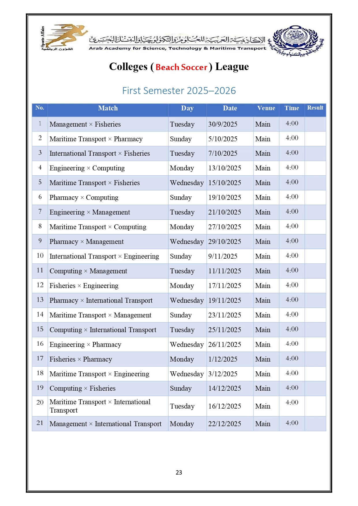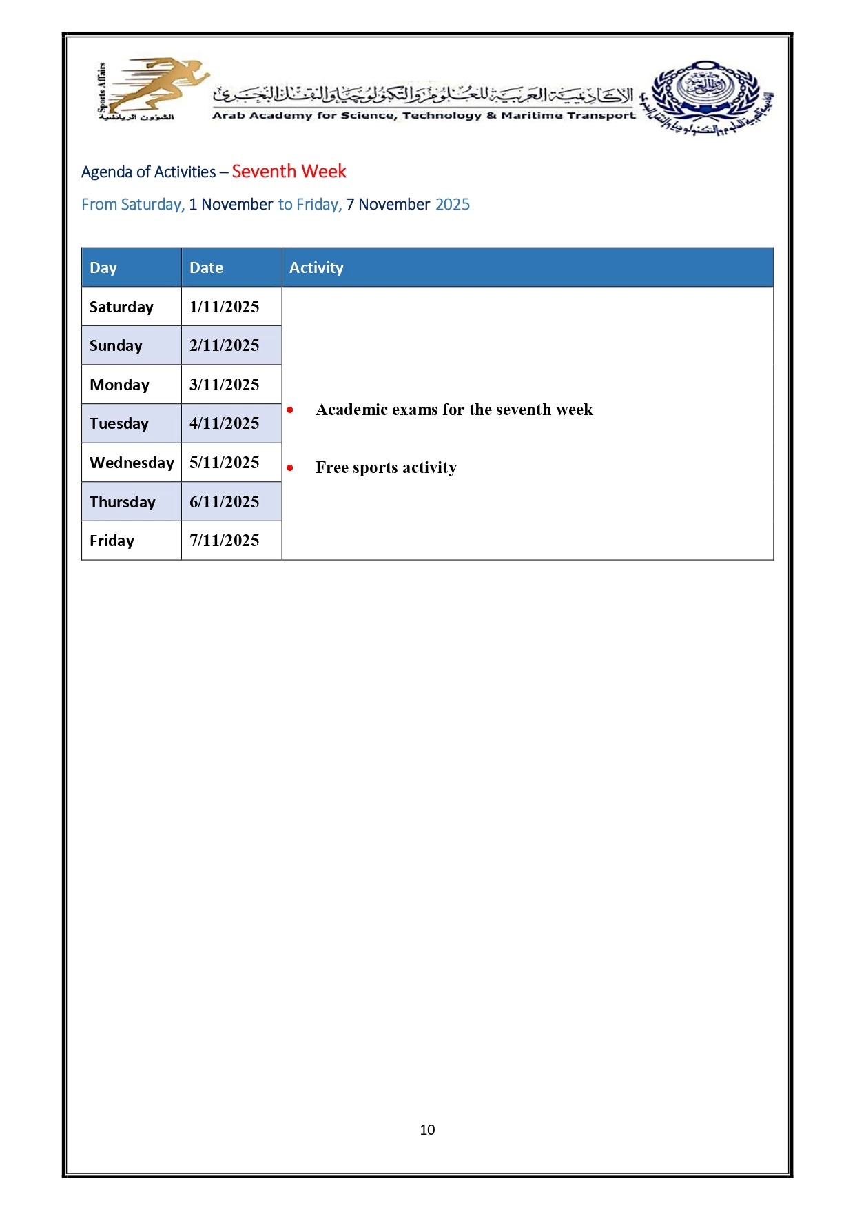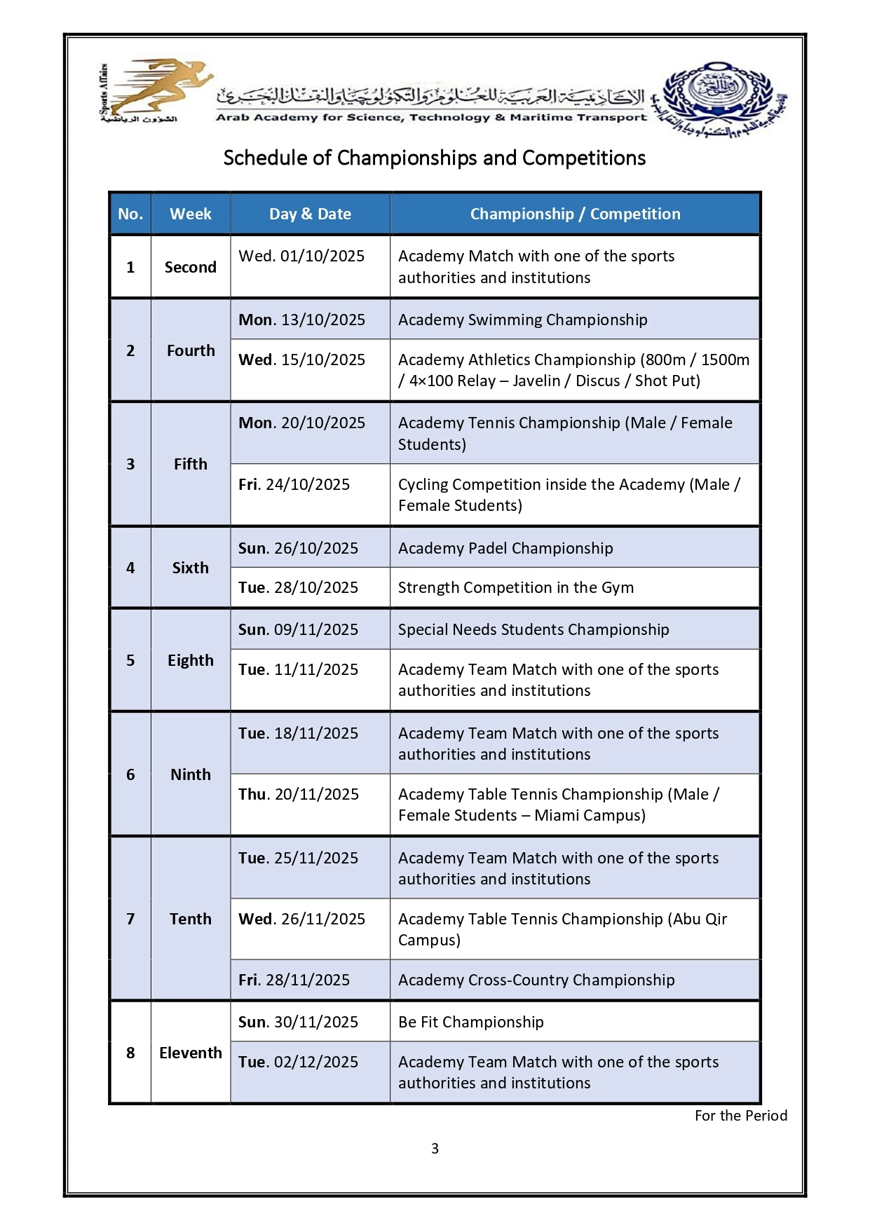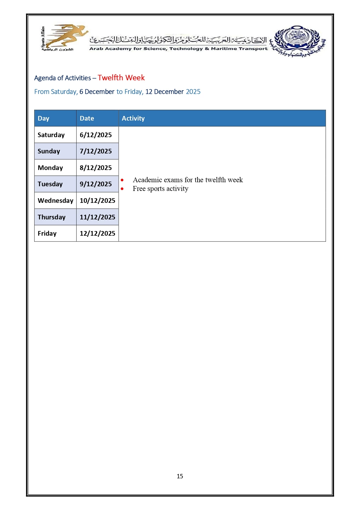 Sports activity plan 2026/2025
