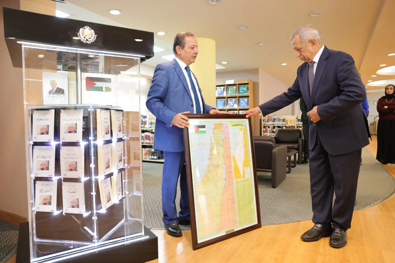 The event was attended by library staff and members of the academic community, where the works of President Mahmoud Abbas were officially deposited to be made accessible to students and researchers.