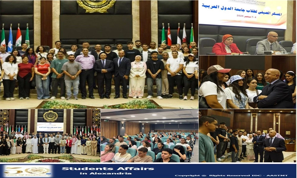 On Thursday, September 4, 2025, the ninth session of the Arab University Youth Camp started at the Arab Academy for Science, Technology, and Maritime Transport in Alexandria, under the patronage of the Secretary-General of the Arab League, Mr. Ahmed Aboul Gheit, and hosted by the academy. The opening featured a speech by the academy's president delivered by Professor Mohamed Abu al-Azm, Dean of Student Affairs, in which he emphasized the importance of Arab cooperation and the role of the academy as the scientific and technical arm of the Arab League, praising its progress in international rankings for the year 2025. The speeches also reviewed the role of the academy in supporting scientific research and organizing the first Arab forum on artificial intelligence, in addition to praising student, cultural, and sports activities. The camp's program includes scientific lectures in the fields of artificial intelligence, transport, and logistics, along with training and cultural visits to explore the landmarks of Alexandria.