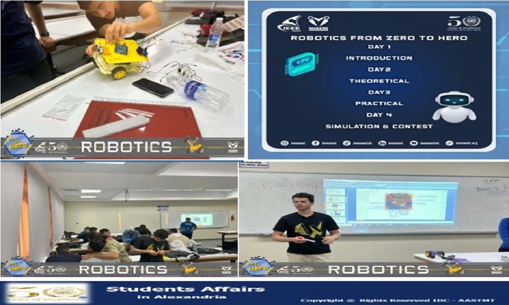The "Robotics from Zero to Hero" is a 4-day hands-on event organized by the IEEE AAST Alexandria Student Branch at AASTMT, with over 50 participants.