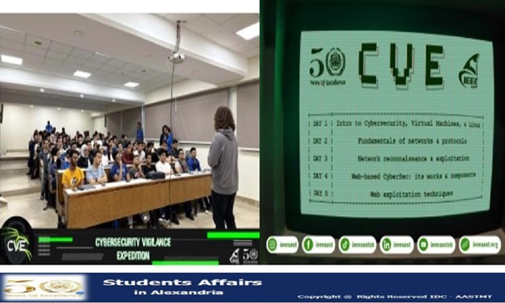 The CVE: Cybersecurity Vigilance Expedition is an engaging event organized by the IEEE AAST Alexandria Student Branch at AASTMT, bringing together 30 passionate participants. In today’s digital age, where technology shapes every part of our lives, this event highlights the growing importance of cybersecurity awareness and protection. Participants will explore the core theories and technical foundations of cybersecurity through interactive sessions and discussions. The event aims to empower attendees with essential knowledge while fostering a collaborative and supportive learning environment. All attendees will receive an official certificate of participation upon completing this insightful cybersecurity journey.