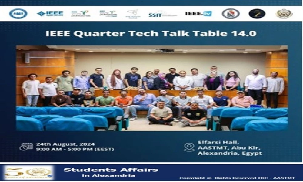 The Arabic Academy is organizing the “Quarter Tech Talk Table Series 14.0” event in cooperation with the IEEE and a number of international partners on 29/8/2024