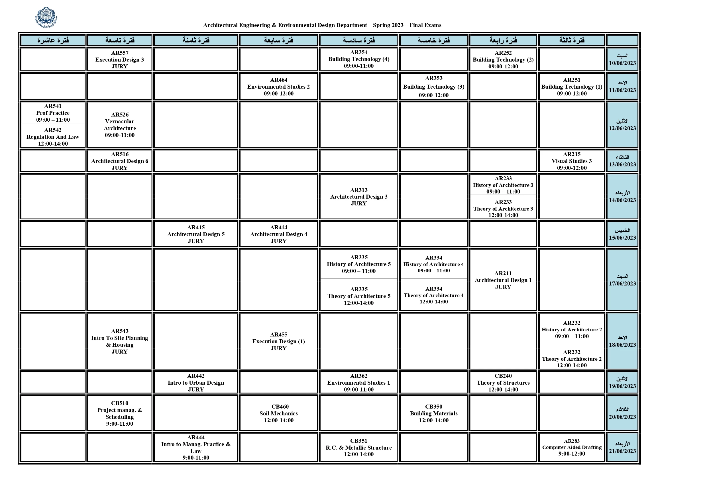 You can download the latest Final Exams Schedule