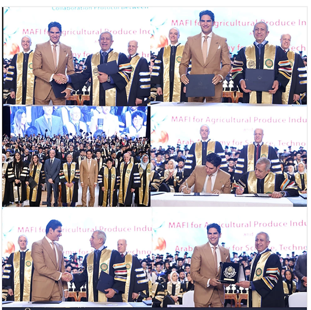 In a move to strengthen collaboration between academia and industry, AASTMT and MAFI for Agricultural Produce Industries signed a cooperation protocol aimed at linking the educational process with industrial practice. The agreement was formalized during AASTMT’s Heliopolis Campus graduation ceremony held on 23 September 2024. The initiative is part of AASTMT’s commitment to continuous technological development and supporting enhanced agricultural education and productivity in the region.