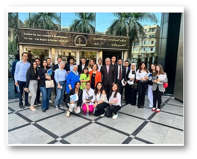 The Center for Environment and Development for the Arab Region and Europe (CEDARE) hosted a delegation of students and faculty members from AASTMT’s Faculty of Management and Technology for an educational visit focused on sustainable development, climate action, and land-based environmental initiatives. This outreach visit aimed to expand students’ understanding of sustainable resource management, biodiversity protection, eco-tourism, and sustainable land use, while showcasing CEDARE’s impactful regional work in environmental sustainability and sustainable development.