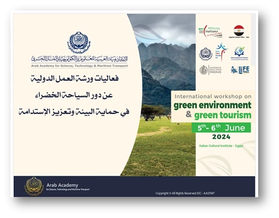 June 2024 — Workshop focused on the role of green tourism in protecting the environment and promoting sustainability (educational/outreach content). Directly addresses green tourism, links tourism with environment protection (education/outreach). AASTMT, through collaborations with the German University of Rostock (TouMaLi Project), Life Makers Foundation (UniGreen Project), and partners from Cyprus and Greece (Green Med Project).